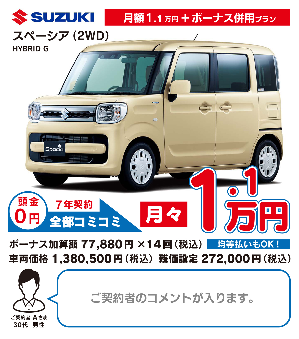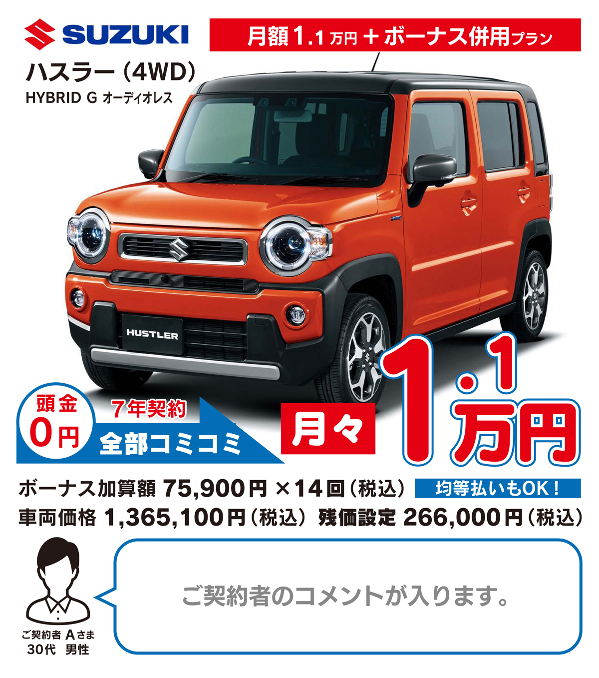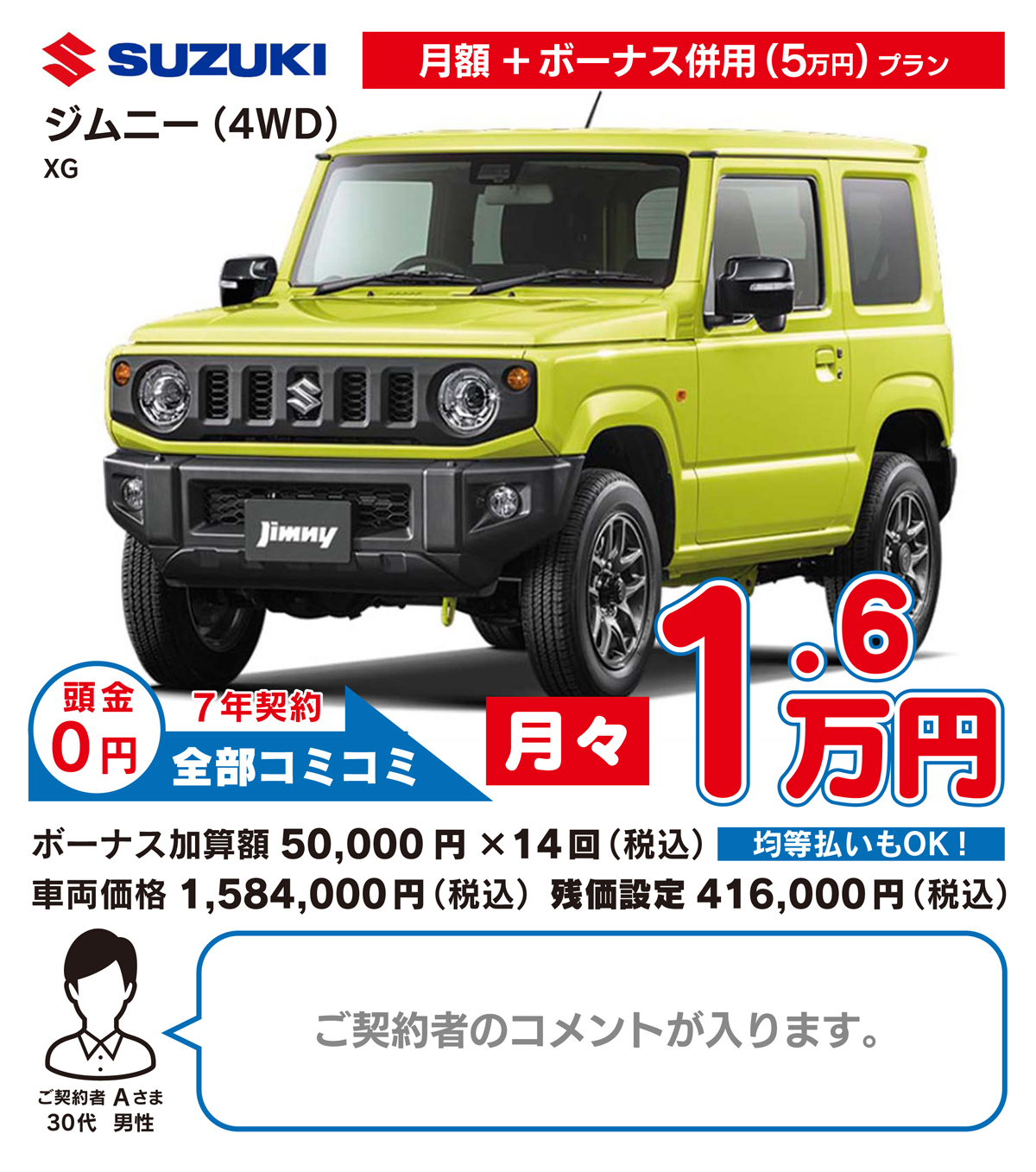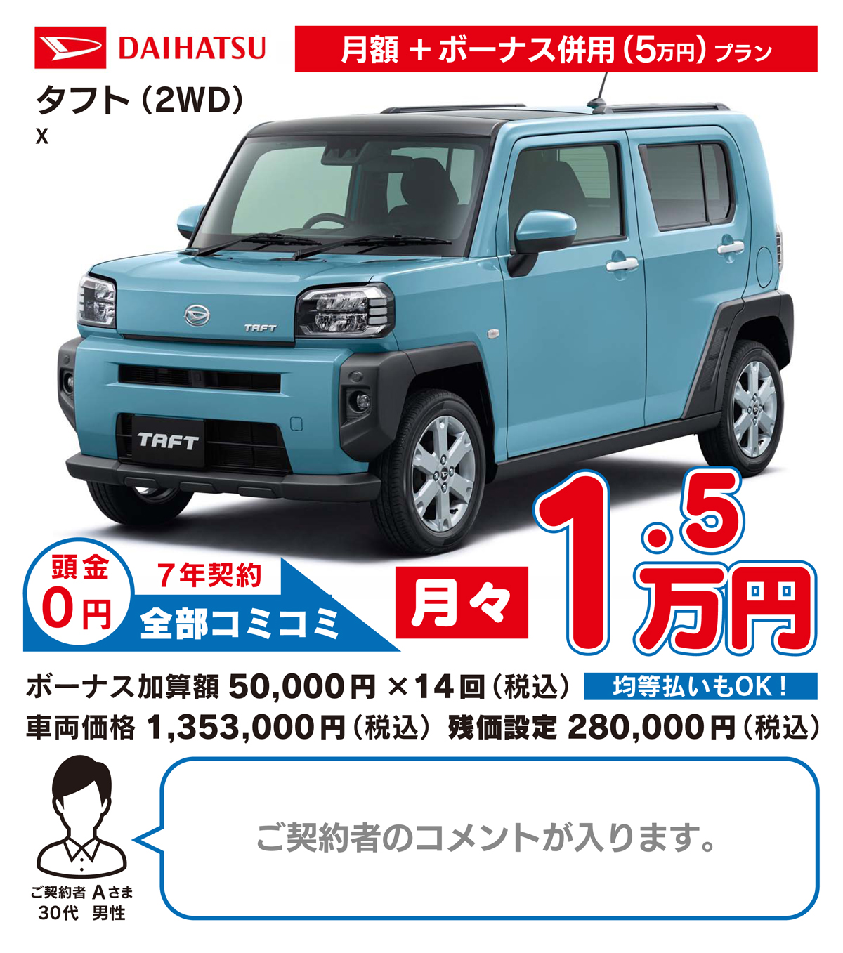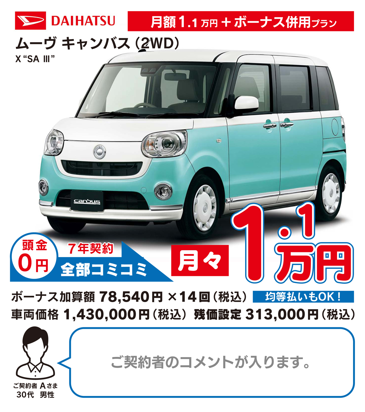 月々定額払いのみのプランに加え、定額払い&ボーナス払いで月々のご負担を軽くする併用プランもお選びいただけます。